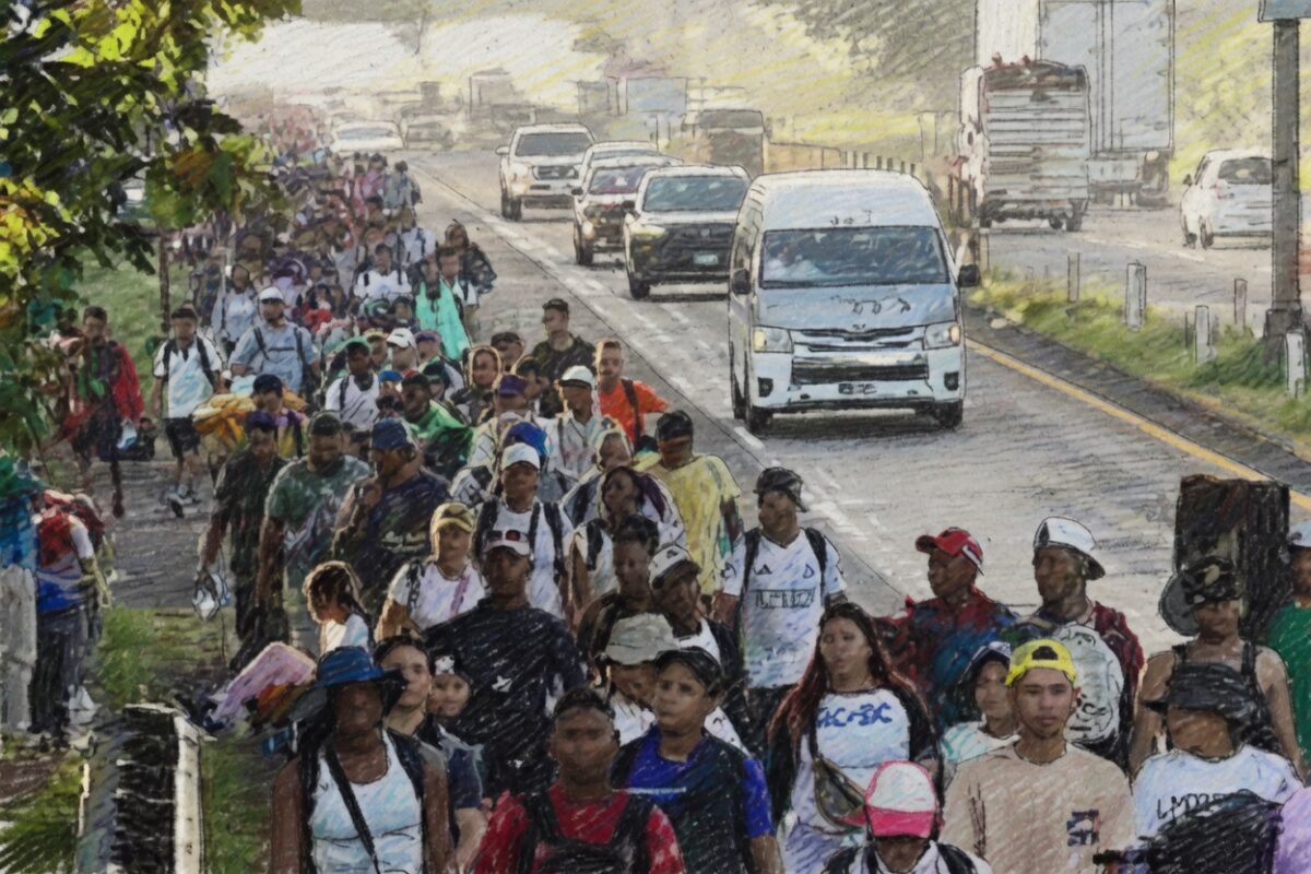 Durante la noche de este lunes, aproximadamente 1,500 personas iniciaron una travesía a pie bajo el nombre “Caravana Migrante David Dios Bendice”, partiendo desde Tapachula, Chiapas. Este grupo se moviliza debido a la saturación de los servicios de atención a refugiados en la entidad. De hecho, los manifestantes denuncian que la Comisión Mexicana de Ayuda a Refugiados recibió 142,145 solicitudes recientemente, pero entregó solo 5,191 tarjetas humanitarias.
